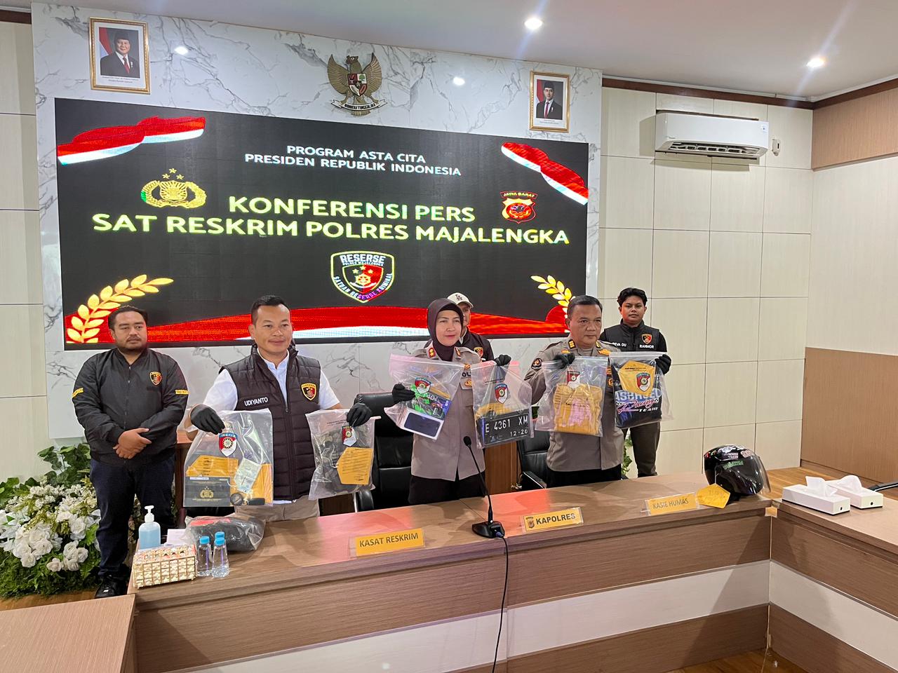 Majalengka, Jajaran Satuan Reserse Kriminal (Sat Reskrim) Polres Majalengka Polda Jabar berhasil mengungkap kasus tindak pidana Pencurian dengan Kekerasan (Curas) kendaraan bermotor yang tergolong sadis di wilayah hukum Polsek Cigasong. Keberhasilan pengungkapan kasus ini disampaikan langsung oleh Kapolres Majalengka AKBP Rita Suwadi, S.H., S.I.K., M.M. dalam konferensi pers yang digelar di Aula Sindangkasih Mapolres Majalengka dengan didampingi Kasat Reskrim AKP Udiyanto, S.H., M.H. dan Kasi Humas AKP Yayan Suripna H, S.H. pada Kamis (16/4/2026).