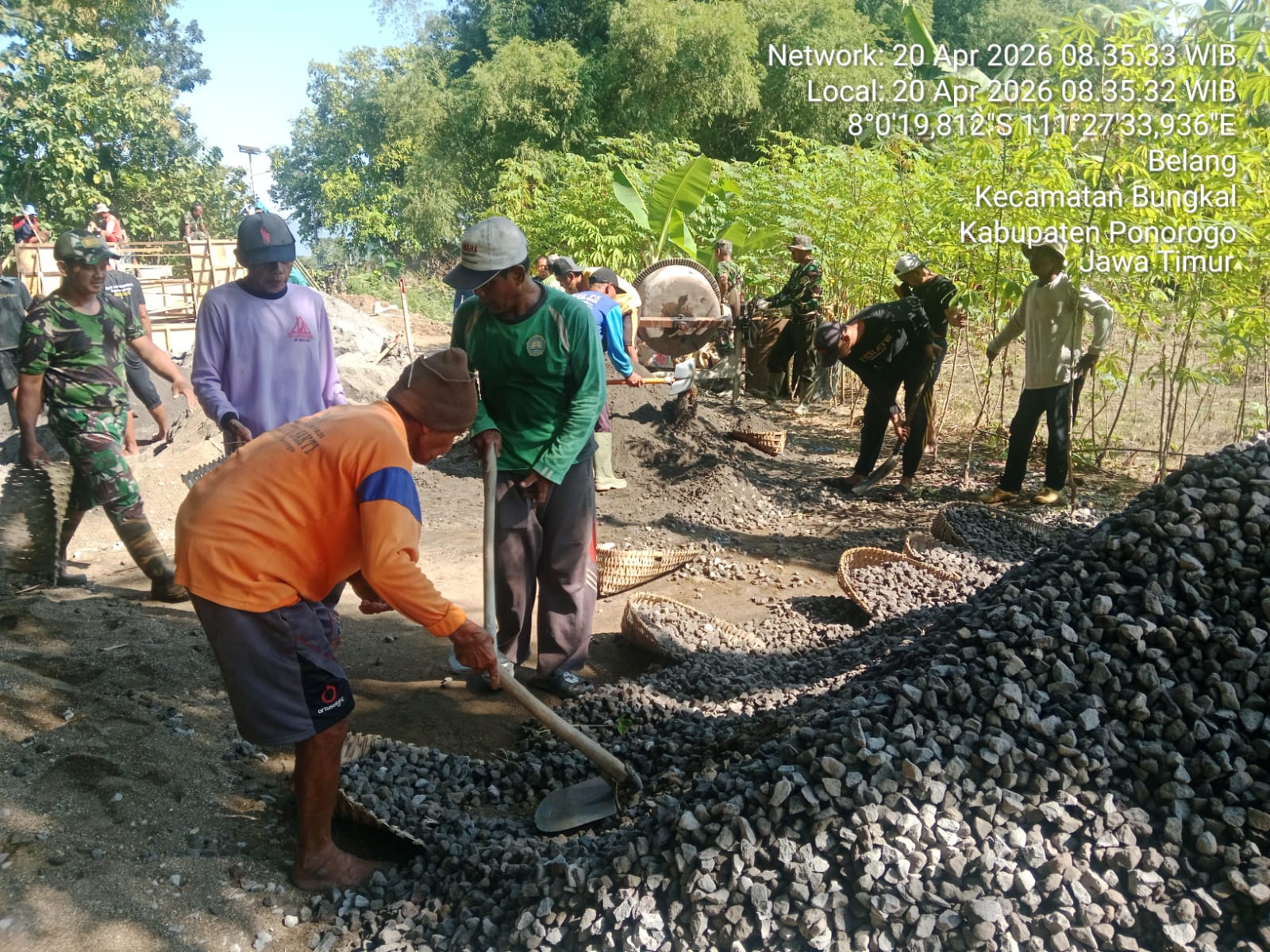 PONOROGO,BUSERJATIM.COM GROUP,-Pembangunan Jembatan Perintis Garuda Tahap III tahun 2026 merupakan proyek strategis pemerintah yang saat ini sedang digarap oleh Kodim 0802/Ponorogo bekerjasama dengan masyarakat dan beberapa unsur terkait, Selasa (21/04/2026).