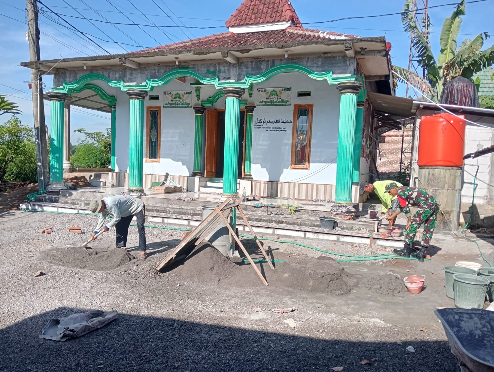 Renovasi mushola dilakukan secara gotong royong dengan melibatkan warga setempat. Pekerjaan meliputi perbaikan bagian bangunan, pengecatan, serta penataan lingkungan sekitar mushola. Suasana kebersamaan tampak jelas, di mana warga saling bahu-membahu tanpa mengenal lelah.