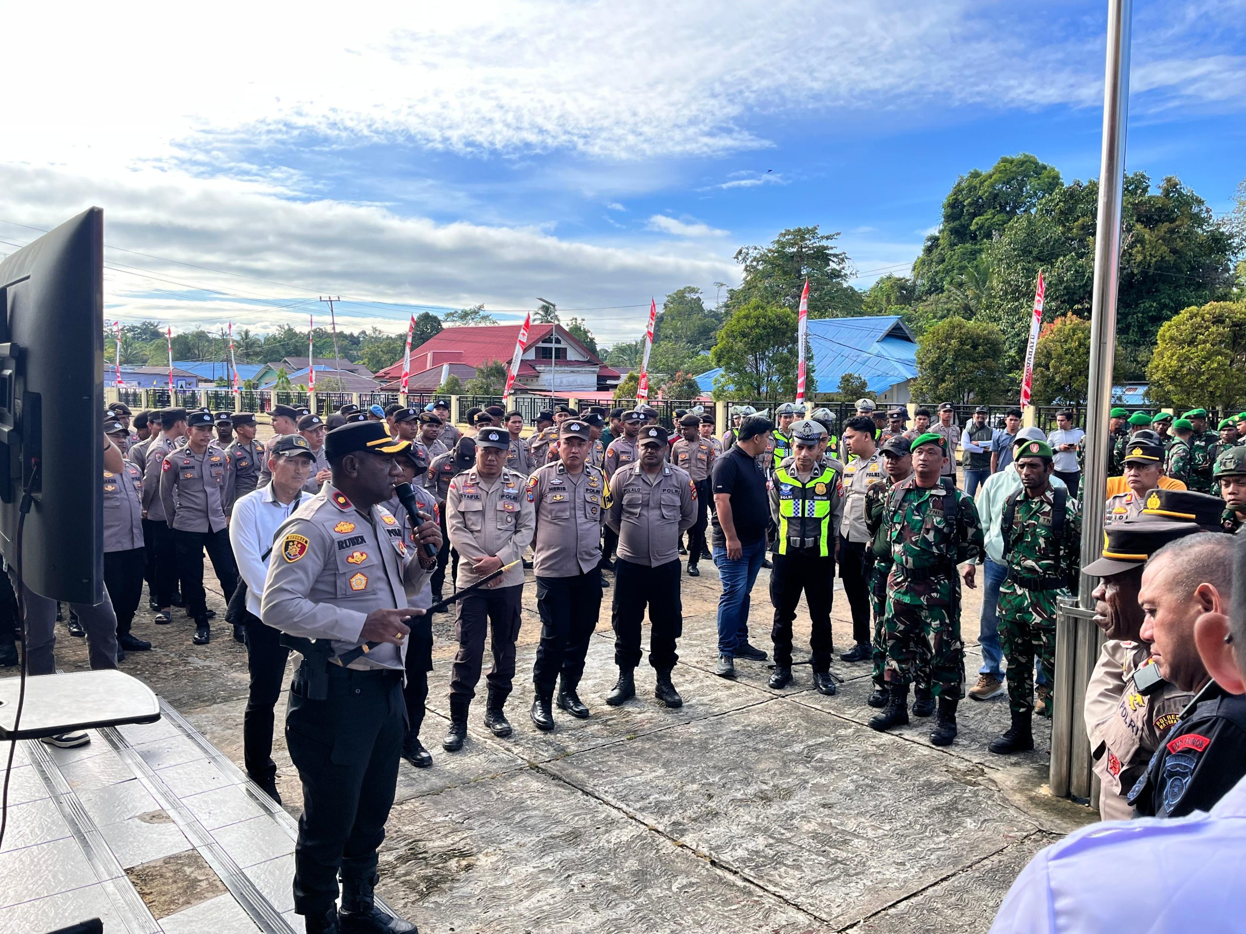 _“Sinergitas TNI-Polri adalah kunci utama. Kami pastikan Pelantikan Jabatan Pimpinan Tinggi Pratama, Administrator dan Pengawas ini berjalan aman tanpa gangguan. Ini bentuk komitmen kami menjaga stabilitas kamtibmas di Maybrat agar roda pemerintahan berjalan baik,”_ tegas Kapolres Maybrat saat ditemui di lokasi.
