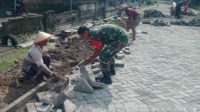 Babinsa Desa Gading Gotong Royong Bersama Warga Pasang Paving Jalan