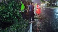 Respon Cepat Polisi Ngawi Tangani Pohon Tumbang Timpa Rumah Warga di Sine