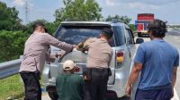 Quick Response Polres Ngawi Bantu Pengendara Alami Ban Pecah di Rest Area Tol
