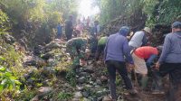 Babinsa Desa Cepoko Ngawi Bersama Warga Gotong Royong Normalisasi Jalan Penghubung Jembatan Mendiro