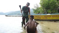 Hangatnya Kebersamaan Satgas TMMD 127 Kodim 1804/Kaimana, Babinsa Tanamkan Wawasan Kebangsaan kepada Anak-anak Kampung Marsi